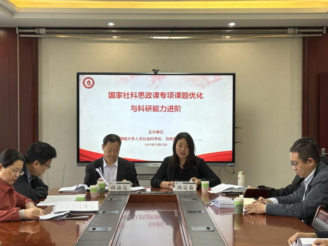 为进一步强化和落实学校“有组织科研”政策,系统提升教师在项目设计与研究方法上的规范性与科学性,提高学院教师的科研能力和水平,10月25日,马克思主义学院与人文社会科学处举办2025年国家社科思政课专项课题优化与科研能力进阶提升辅导会,特邀曲阜师范大学马克思主义学院院长孙迪亮教授、山东建筑大学马克思主义学院院长巩克菊教授莅临指导,马克思主义学院骨干教师及全校申报国社科思政课专项的教师参会,会议由马克思主义学院院长刘子平教授主持。这是马克思主义学院举办的2025年国家社科思政课专项第二轮打磨、省社科专项第四轮打磨及2026年国社科选题第二轮论证会。