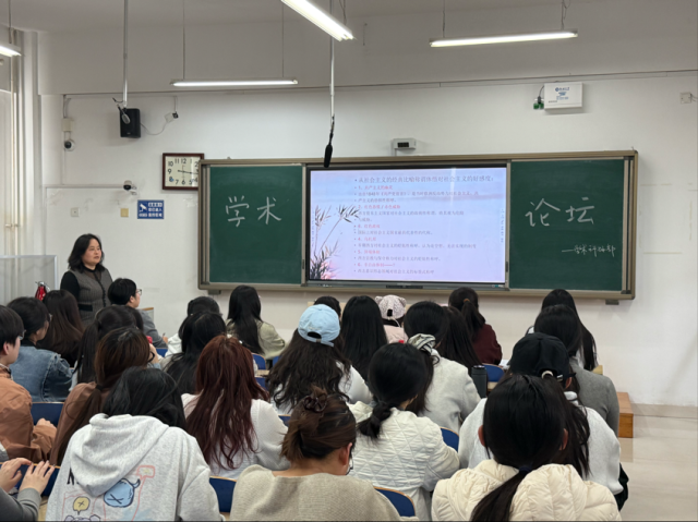 王桂菊副教授围绕《思想殖民视阈下社会主义好感度提升路径探赜》主题展开深度分享,以判断社会性质的核心标准为切入点,从生产关系、国家政权等多维度系统阐释社会主义本质特征与制度优势。她结合毛泽东同志对苏联社会主义性质蜕变的深刻分析,点明思想殖民的本质与手段,指出这是当前提升社会主义好感度面临的严峻挑战。她强调,提升社会主义好感度需牢牢把握意识形态工作主动权,从坚守理论根基、创新传播路径、强化实践育人三个方面精准发力,让青年增强对社会主义的价值认同。做好社会主义好感度提升工作,是筑牢意识形态安全防线、强化青年思想引领的关键所在。本次学术论坛的举办,为学院师生搭建了优质的学术交流与思想碰撞平台,进一步深化了师生对意识形态安全与社会主义认同建设的理解,为推动新时代马克思主义理论研究与青年思想引领工作注入了新动力。