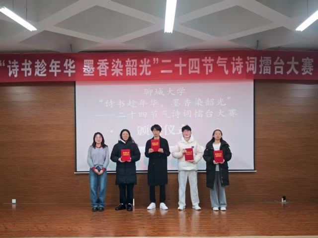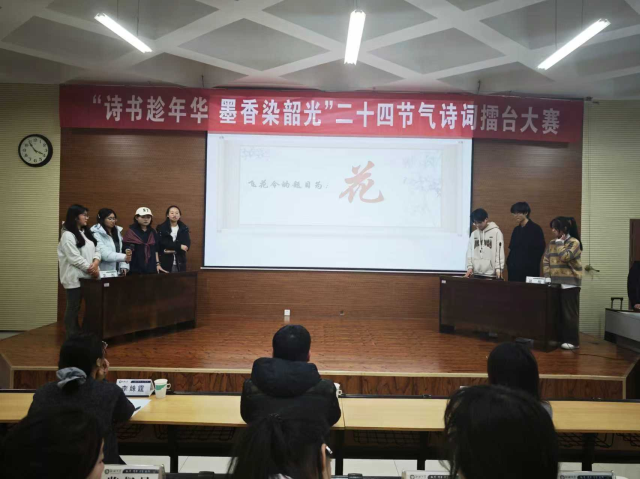 为传承中华优秀传统文化,深入挖掘二十四节气的丰富内涵,切实锤炼学生的诗词积累与语言表达能力,12月28日,由校团委主办,物理科学与信息工程学院、马克思主义学院承办的“诗书趁年华,墨香染韶光”二十四节气诗词擂台大赛于东校区6#C106顺利举办,吸引了来自全校的24支队伍参赛。经过多轮激烈角逐,马克思主义学院代表队凭借出色表现荣获二等奖。