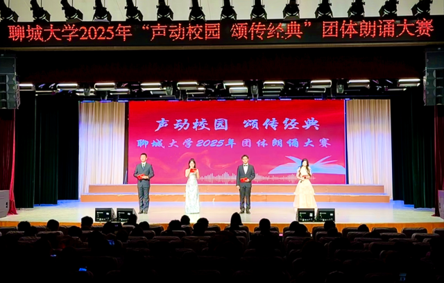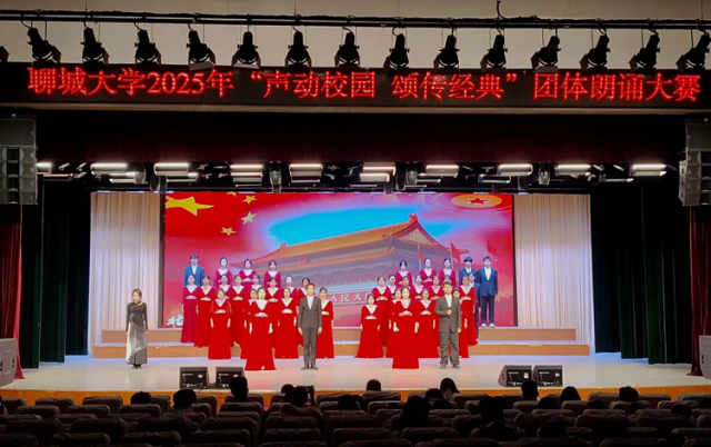 为厚植青年家国情怀,传承中华经典文脉,凝聚奋进新时代的青春力量,11月23日,聊城大学2025年“声动校园 颂传经典”团体朗诵比赛于西校区科学会堂举行,来自全校23支队伍积极参加,我院荣获三等奖。