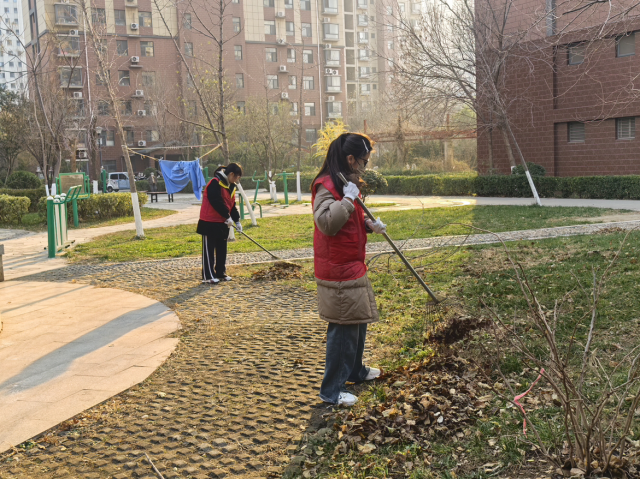 活动现场,志愿者们采取“清理、转化、宣传”相结合的方式开展环境卫生整治。他们手持扫帚、垃圾夹、环保袋等工具,对社区道路、绿化带、公共活动区等区域进行全面清理,仔细拾捡落叶与散落垃圾,并专门设置落叶堆肥点,将收集的落叶转化为“社区生态肥料”,实现资源循环利用。同时,志愿者们也积极向居民讲解落叶堆肥的意义与方法,传递节约资源、爱护环境的绿色理念。