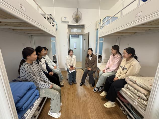 同时,老师们与学生暖心交流日常学习生活状态,亲切关怀学生近期的生活适应、课程学习、文体活动等状况,耐心解答学生在成长发展中遇到的困惑,勉励学生不断追求进步,走进宿舍“护家”,走出宿舍“创佳”。