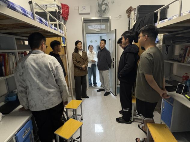 本次活动围绕安全检查、温情关怀与需求调研三大重点展开,全面排查宿舍安全隐患,传递学院对学生的关心与问候。走访过程中,老师们细致检查了学生宿舍的用电规范、卫生环境等情况,针对存在的问题现场提出整改意见,切实筑牢宿舍安全防线。
