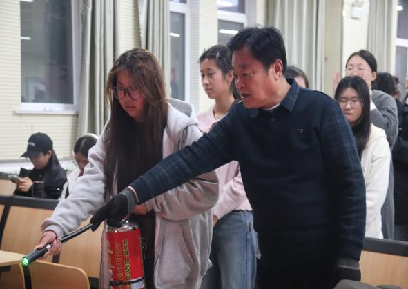 本次消防培训分为理论讲解与实操演练两个环节。在消防安全培训部分,主讲人结合真实火灾案例视频,通过多媒体系统讲解了消防相关法律法规,并围绕火灾预防、灭火器分类与适用场景、火灾应对措施等重点内容展开阐述,帮助学生深刻认识消防安全的重要性,真正将防火知识内化于心、外化于行。