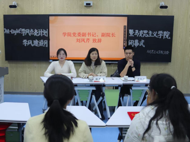 教师总结阶段,裴新丽系统回顾了学风建设月期间开展的系列活动,充分肯定了同学们在经典研读、实践调研、演讲比赛等环节中所展现的积极性与创造力;史仁扩从活动组织角度指出部分活动参与面不够均衡、理论学习成果转化尚不充分等问题,并提出具体改进建议;刘凤芹则从学院发展全局出发,对本次活动进行全面总结,强调须将学风建设月成果转化为持续动力,助力学院人才培养质量不断提升。
