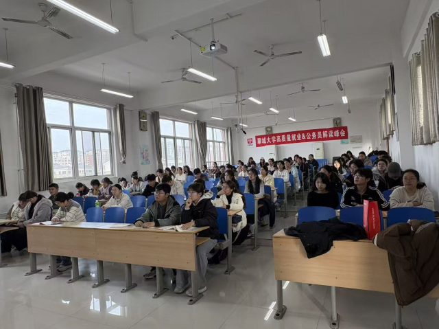 此次宣讲紧扣公考核心需求,内容兼具专业性与实用性,切实为学院有公考意向的学子搭建了高效的信息对接平台。活动不仅有助于帮助同学们明晰公考政策细则,夯实科学备考基础,而且有助于同学们在公考备考之路上稳步前行,以扎实的学识与充分的准备迎接挑战,实现职业理想。